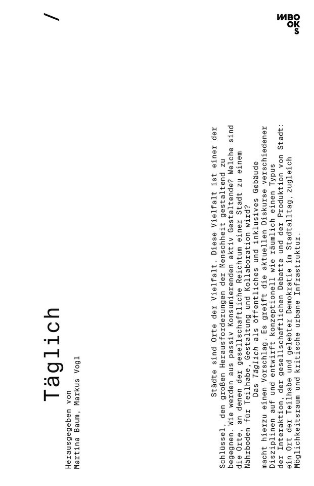 Martina Baum, Direktorin des Städtebau-Instituts und Professorin für Stadtplanung und Entwerfen an der Universität Stuttgart, und Markus Vogl, Direktor des Walter Gropius Lehrstuhls der Fakultät für Architektur, Design und Urbanismus an der Universität Buenos Aires, haben sich gemeinsam mit Mitarbeiter:innen des Studio Urbane Strategien Stuttgart und Studierenden beider Fakultäten im Rahmen eines Forschungsprojekts in Vorbereitung auf die IBA’27 Stuttgart auf die Suche nach »Orte[n], an denen der gesellschaftliche Reichtum einer Stadt zu einem Nährboden für Teilhabe, Gestaltung und Kollaboration wird« gemacht. Mit der Überzeugung, dass in der Stadt als Ort der Vielfalt »einer der Schlüssel [liegt], den großen Herausforderungen der Menschheit gestaltend zu begegnen«, tragen die Architekt:innen und Stadtplaner:innen theoretische Versatzstücke zu einem soliden Fundament zusammen, auf dem inspirierende Praxis beleuchtet wird. Den daraus resultierenden Vorschlag nennen die Herausgeber:innen – passend zur Revolutionierung des urbanen Alltags nach Lefebvre – das Täglich, ein »öffentliches und inklusives Gebäude«, ein »konzeptioneller wie räumlicher Typus der Interaktion, der gesellschaftlichen Debatte und der Produktion von Stadt: ein Ort der Teilhabe und gelebter Demokratie im Stadtalltag, zugleich Möglichkeitsraum und kritische urbane Infrastruktur.«