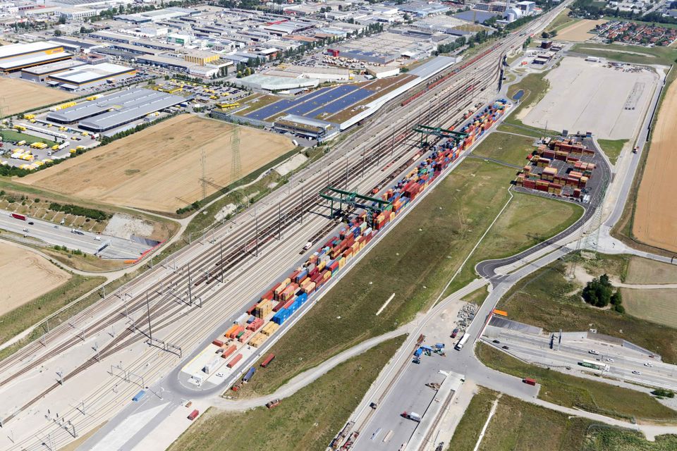 Güterzentrum Wien Süd: Durch die Auslagerung innerstädtischer Frachtenbahnhöfe wurden in zentraler Lage die letzten großen Areale für die Entwicklung innerstädtischer Quartiere frei gemacht. Für die innerstädtische Versorgung bedeutet dies aber auch eine Verlagerung des Warenverkehrs von der Schiene auf die Straße und ein erhöhtes Verkehrsaufkommen. Links oben: Logistikzentrum der Österreichischen Post AG, dahinter der Großmarkt Wien. Foto – Stadt Wien – data.wien.gv.at.