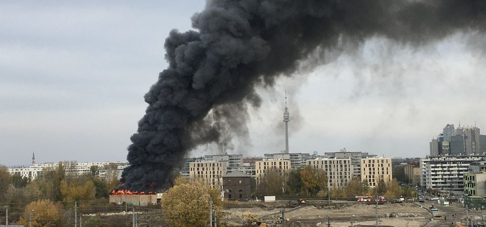 Die Rauchsäule der brennenden Nordbahnhalle war über ganz Wien zu sehen. Foto — Irina Nalis-Neuner