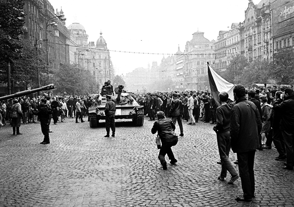 Hoschs Bilder zeigen zwei Formen von Örtlichkeit: Zum einen eine abstrakte Form, auf Transparenten mit den Namen Moskau und Russland; so weist ein Transparent die Richtung nach Moskau, auch auf die Länge der Reise von 1800 km wird verwiesen, ein anderes rät „CCCP, go home!“. Zum anderen wird der Wenzelsplatz zu einer direkten und unmittelbaren städtischen Formation, generiert zur Bühne für das Spektakel des Widerstandes. Der einzelne Mensch steht einem einzelnen Soldaten gegenüber, DemonstrantInnenguppen belagern Panzer, die gekommen sind, um die Stadt zu belagern. Hier in der Tschechoslowakei wird nicht wie bei den Mai-Unruhen in Paris ein Gebäude beziehungsweise ein Viertel, das Quartier Latin, besetzt gehalten, nicht eine Institution ist Inhalt und Anstoß des Konfliktes. In Prag, Bratislava und Brünn stehen die Gesellschaft, deren politisches Verständnis und die Freiheit einer Nation im Vordergrund. Der öffentliche Raum wird zum Schauplatz des Konfliktes; der Wenzelsplatz in Prag fungiert als Gefäß. Aktivitäten verdichten sich und polarisieren gewisse Bereiche des Platzes und seiner näheren Umgebung, woanders kehrt wieder Ruhe ein. In der Mitte tänzelt der Fotograf, wird von den Geschehnissen getrieben und gezogen. Es scheint, als ob nicht mehr Hosch seine Kamera führt, sondern das Geschehen selbst Regisseur und Hauptdarsteller seiner Aufnahmen ist. Es entstehen filmische Sequenzen, stumme Zeitrafferaufnahmen, mehr als tausend Worte wert. Beim Betrachten der Bilder fällt auf, wie die Gebäude des Platzes angesichts der Geschehnisse an Schärfe und Präsenz verlieren. Ein Satz des Kommunistischen Manifests kommt einem in den Sinn: „Alles Ständische und Stehende verdampft, alles Heilige wird entweiht, und die Menschen sind endlich gezwungen, ihre Lebensstellung, ihre gegenseitigen Beziehungen mit nüchternen Augen anzusehen.“