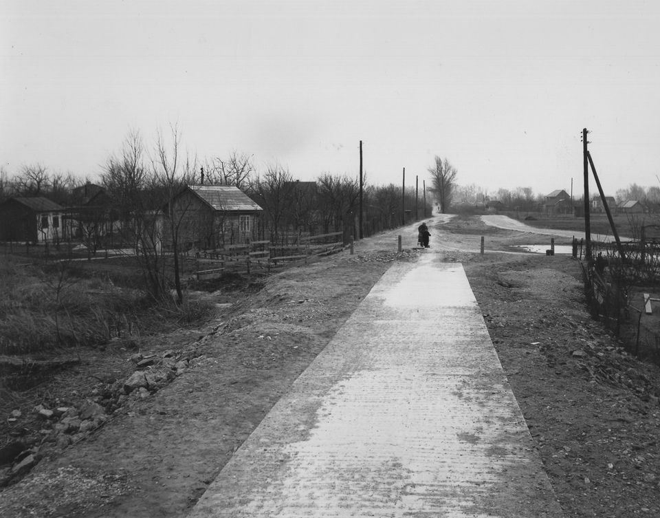 Abb. 01: Die Nachrüstung des instabilen Randes: Straßenbau und Stromleitungen bei ›Primitivsiedlungen‹ in der Hardeggasse (22. Bezirk), 1953; Quelle — Wiener Stadt- und Landesarchiv (WStLA), M.Abt. 228, FC: 22.169