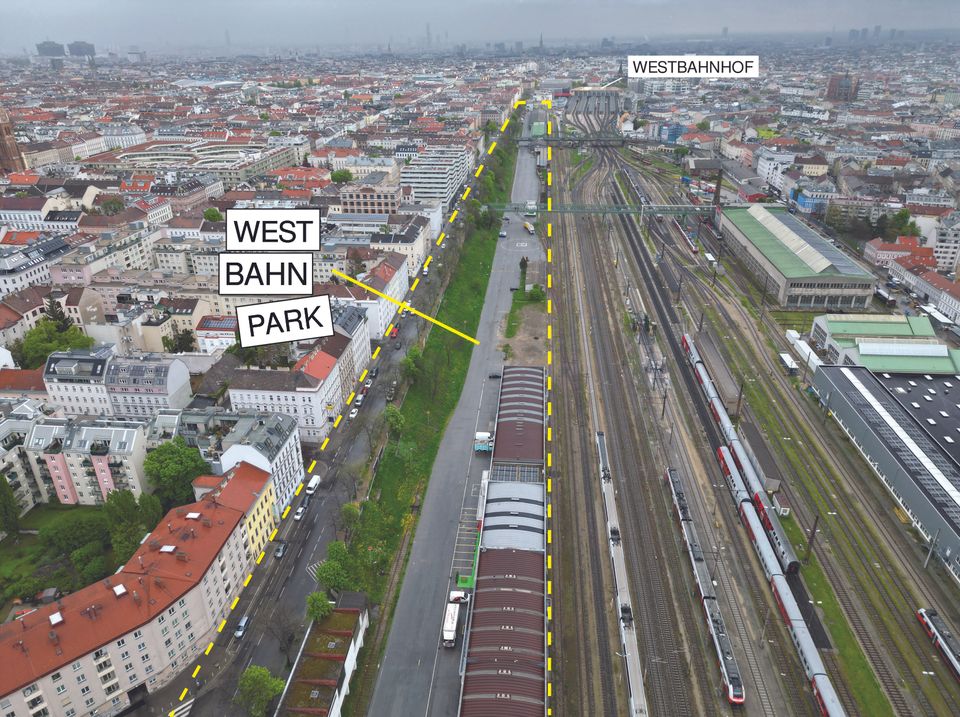 Die Errichtung des Westbahnparks am Westbahnhof in Wien bietet eine Jahrhundertchance für Grünraumgerechtigkeit und Klimaanpassung weit über den 15. Bezirk hinaus. Foto — Benedikt Safer