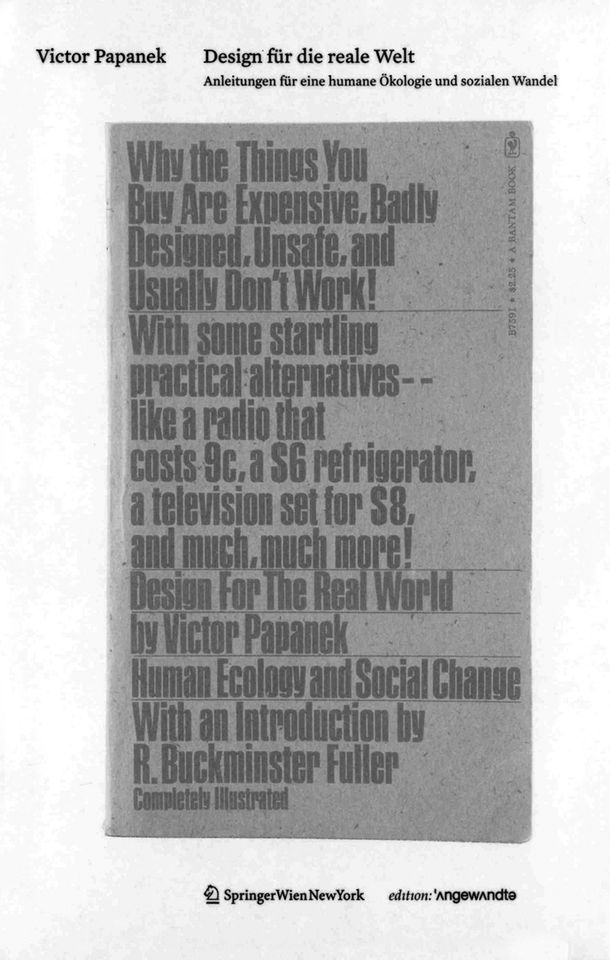 Die Neuübersetzung ist als Wiederentdeckung einer Rezeptionsgenealogie zu werten, die Papaneks Ansätze in eine kritische Geschichte anderen Designs zu stellen hat, wie es in den 1990er Jahren, nicht nur im Design, sondern auch in Architektur, Stadtplanung sowie künstlerischen Praxen, unter dem Begriff der Nachhaltigkeit, des sustainable design, neuen Aufwind bekam und das Soziale wie Ökologische als Aufgabe wieder zu entdecken begann. Die Neuherausgabe in der Edition der Universität für angewandte Kunst Wien ist aber auch ein Signal für die dort bevorstehende Errichtung eines Forschungs- und Entwicklungszentrums für Social Design.