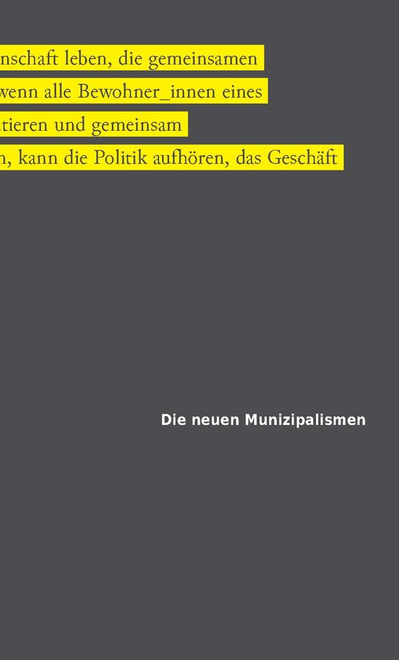 Insgesamt schafft der Band eine wertvolle Bestandsaufnahme für das Echtzeit-Labor Munizipalismus, in dem Theorie und Praxis tastend entwickelt und erprobt werden. Dazu gehört wohl ebenso, dass es für die Zukunft einer Sprache und Übersetzungsleistung bedarf, die auch den theoretischen Diskurs für unterschiedliche Milieus zugänglich macht. Aber noch ist das letzte Wort ja nicht geschrieben.