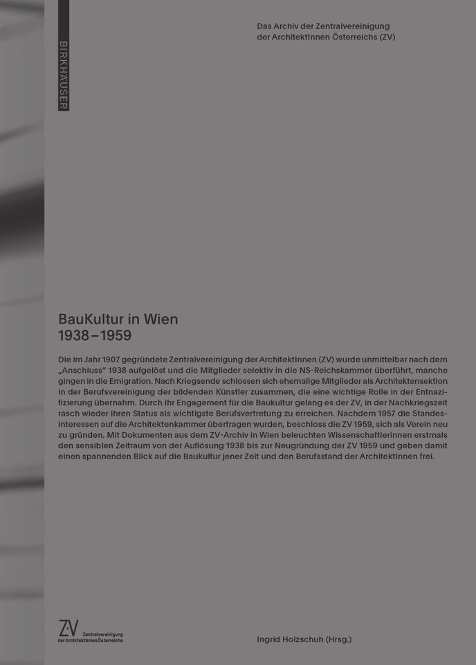 Mit dem Band Baukultur in Wien 1938–1959 leisten die Autorinnen einen wichtigen Beitrag zur österreichischen Architekturgeschichtsschreibung. Denn anhand des Vereins Zentralvereinigung der ArchitektInnen (ZV) mit seiner überschaubaren Mitgliederzahl – 1937 waren es österreichweit etwas mehr als 500 – lassen sich politische Übergänge wie in einem Brennglas beobachten und damit auch Rückschlüsse auf andere Berufsgruppen bzw. die Gesellschaft in ihrer Gesamtheit ziehen. Die versammelten Texte lassen einerseits ein umfassendes Zeitpanorama sowohl für die Epoche des Nationalsozialismus als auch der Nachkriegszeit entstehen und ermöglichen andererseits spezielle Vertiefungen zu ausgewählten Aspekten – etwa zur Rolle von Frauen in der Architektur, zum internationalen Architekturdiskurs, zur Bedeutung der Architekturpublizistik oder zum Schicksal