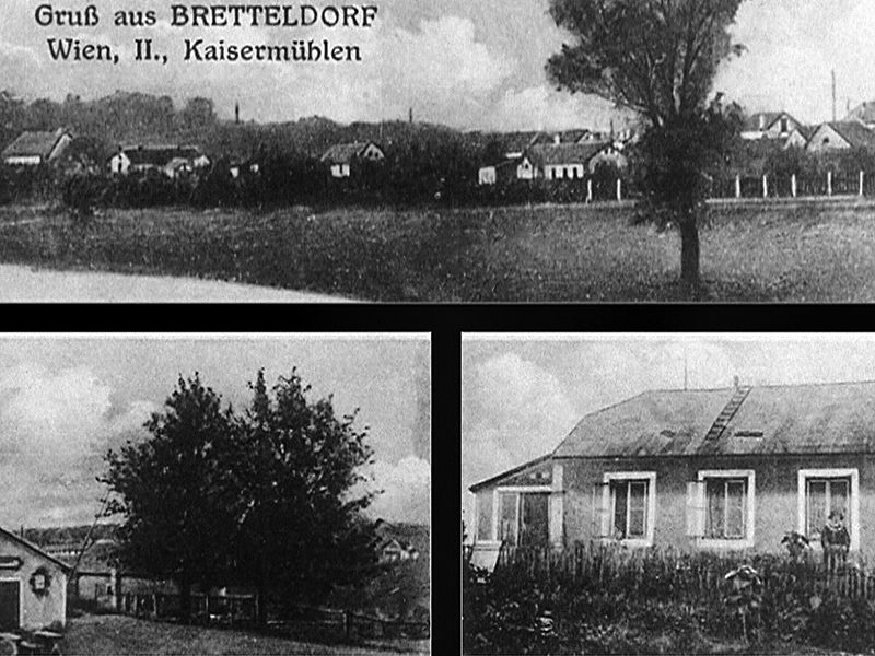 In Wien wurden Behelfs- oder Elendssiedlungen umgangssprachlich Bretteldörfer genannt. Stadtweite Bekanntheit erlangte das Bretteldorf in den Donauauen. Bereits vor 1900 siedelten sich dort die ersten Familien an, meist Banl- und Koksstierer (Knochen- und Kokssammler), die auf der nahen städtischen Mülldeponie nach verwertbarem Material suchten. Als Gründer der Siedlung galt allerdings ein Straßenbahner, Martin Weiss. Armut, Versorgungskrise und der Leidensdruck in überbelegten Mietskasernen – Resultat der marktgesteuerten Wohnversorgung in der Gründerzeit – (Zimmerl 2002, S. 66) führten dazu, dass es schon während des Ersten Weltkriegs für viele WienerInnen keine Alternative zur Selbsthilfesiedlung gab. Wie in anderen peripheren Gebieten entstanden auch zwischen regulierter und alter Donau auf gerodeten Flächen im Auwald informelle Siedlungen – das Bretteldorf und der benachbarte Bruckhaufen.