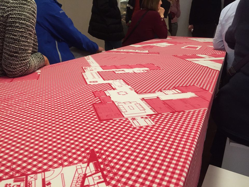 Im dritten Ausstellungsteil werden die BesucherInnen durch eine sogenannte Cluster-Wohnung geführt. Dabei handelt es sich um das 1:1-Modell eines Grundrisses (genauer eines Ausschnitts davon), der dem einfachen Prinzip der Minimierung von privaten Wohneinheiten bei gleichzeitiger Maximierung von Gemeinschaftsflächen folgt. Diese Wohnungstypologie kombiniert privaten Rückzug mit der Möglichkeit sozialer Interaktion in großzügigen Küchen und Gemeinschaftswohnräumen. Sie ist auch