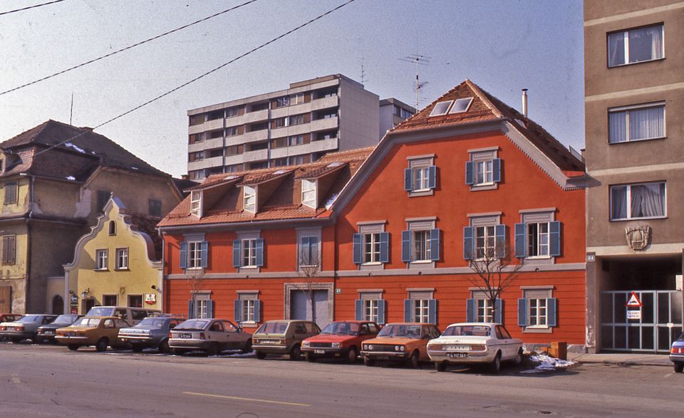 Lendplatzseitige Ansicht nach Fertigstellung, 1987; Foto — Volker Giencke & Company