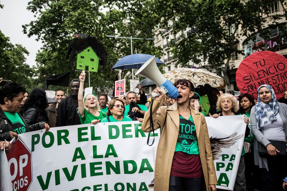 Demonstration der Plataforma de Afectados por la Hipoteca (PAH; Plattform für von Hypotheken Betroffene) für das Recht auf Wohnraum; Barcelona 2018 Foto — Victor Serri