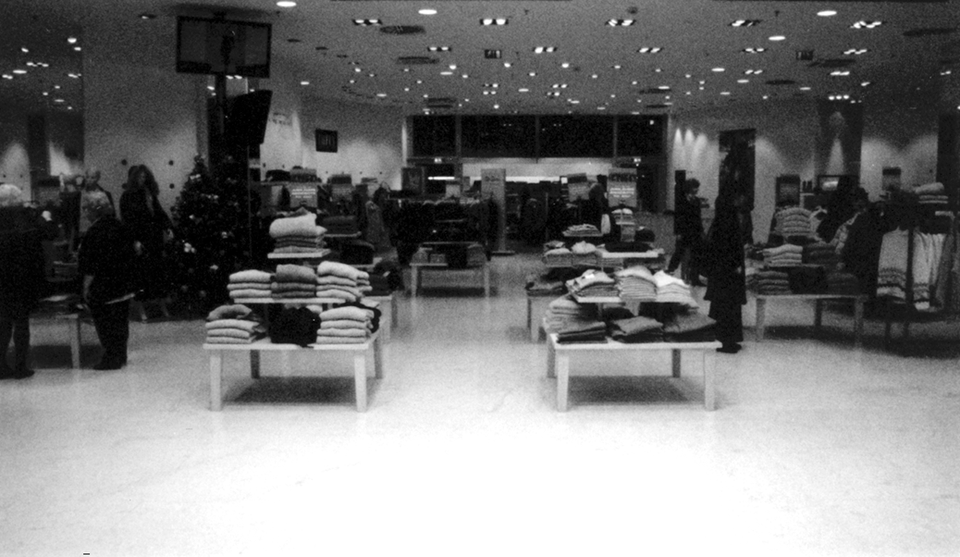 Um das reibungslose Funktionieren dieses Systems sicherzustellen, müssen all jene Personen ausgeschlossen werden, die – aus welchen Gründen immer – nicht kaufkräftig genug sind. Nicht nur, daß sie besonders gefährdet wären, sich Eigentumsdelikte zuschulden kommen zu lassen, sie stören in erster Linie das Bild. Das Bild von der heilen Welt, von Fülle und Überfluß, Wärme und Homogenität, sie sind dem Geschäft abträglich – dessen machen sie sich auf alle Fälle schuldig. Zutritt ins Paradise hat nur, wer sich den dortigen Gepflogenheiten anpaßt. [Get. The Money. First.] Im Fall von Marianne Fastvolds Hypermarkt ist die Kontrolle noch teilweise sichtbar, nicht im Inneren – da ist die Welt in Ordnung –, aber doch rundherum: das Zentrum ist geschlossen, wer hinein will, muß sich unangenehmen Hantierungen aussetzen. Dieses Modell, das zur Zeit in Vervielfältigung begriffen ist – etwa in Form der amerikanischen Gated Communities – ist eigentlich bereits veraltet, denn nicht nur die Besitzlosen sind unansehnlich, plumpe, sichtbare Kontrollmethoden sind es auch. Die neuesten Konsumwelten kommen ohne sie aus, paradigmatisch dafür: Manhattans neuer Times Square. An dem hat sich auf den ersten Blick nicht viel geändert, er ist nach wie vor »öffentlicher Raum«, im Sinn von öffentlich zugänglicher Raum, keine Schranken verhindern das Betreten. Aber dennoch fehlen viele, die bisher ihren Platz auf ihm gefunden haben, sie werden diskret hinauskomplimentiert. Flächendeckende Videoüberwachung und ein stets präsenter privater Sicherheitsdienst machen dies möglich, finanziert in Public-Private-Partnership von der Stadt New York und der Walt Disney Company. Zur noch reibungsloseren Abwicklung gibt es ein neues Gericht, das sich – da nur für dieses Gebiet zuständig – auch mit den vielen Bagatelldelikten auseinandersetzen kann.[7] Was dieses Modell anzeigt, ist das Unsichtbar-Werden der Kontrollfunktion und ihr Verschwinden im Spektakulären der Architektur.
