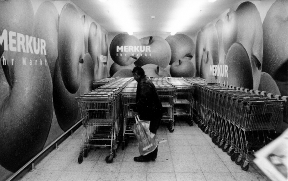 Was als Freizeit ausgegeben wird, als persönlich frei zu gestaltende Zeit, als freie Zeit für das »wirkliche Leben« – die Wirklichkeit muß spektakulärer sein als der wirkliche Alltag –, entpuppt sich als Pflicht. Denn die Arbeiterin muß nicht nur arbeiten, um die Wirtschaft am Laufen zu halten, sie muß auch konsumieren: so lösen sich zwei getrennte Zeit-Räume voneinander, jener der Arbeitswelt, in der die Arbeiterin als Arbeiterin behandelt wird und jener der Freizeitwelt, in der sie in der Verkleidung der Konsumentin als Mensch behandelt wird – Guy Debord spricht deshalb vom Humanismus der Ware.[6] Im Konsum entdeckt sich die Arbeiterin auch als Staatsbürgerin, die Frage der Wahl von Gütern ersetzt zunehmend die herkömmlichen politischen Rechte und Pflichten, weshalb das Einkaufszentrum zunehmend als Restbestand »öffentlichen Raums« betrachtet werden muß. Der Pflicht zur Wahl liegt jedoch primär eine Ethik des Konsums zugrunde, die Verpflichtung, das Geld im Umlauf zu lassen, die nationale Volkswirtschaft nicht durch zu große Sparsamkeit zu schädigen und sich so als umsichtige Staatsbürgerin zu erweisen – daher kann nicht nur gekauft werden, es muß gekauft werden. Die Verpflichtung zum Kauf und zur Erlangung eines bestimmten Grades an Wohlstand kaschiert dabei die Verpflichtung zur Arbeit, denn wer kaufen will, muß auch bezahlen [Get. The Money. First.]; entweder man hat es – dann wird man schon anständige Staatsbürgerin sein –, oder man muß dafür arbeiten – spätestens dann wird man anständige Staatsbürgerin. Als solche Art im Zaum zu halten, nicht nur an Wochentagen, sondern auch an freien Tagen zu beschäftigen, eignet sich die Pflicht zum Konsum hervorragend zur Kontrolle.