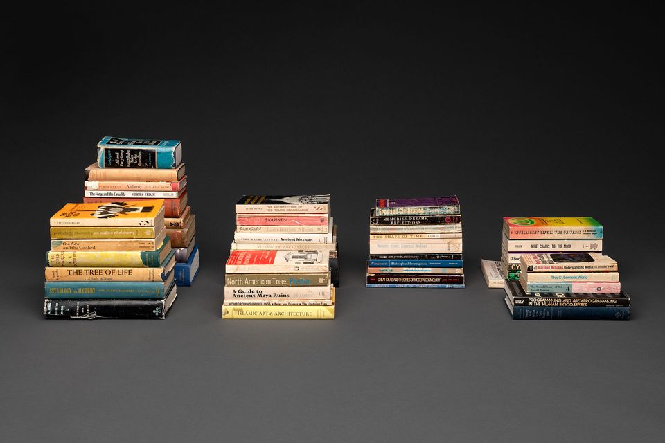 Bücher über Netzwerke, Schwerkraft, Alchemie und innere Räume, ausge- wählt von Yann Chateigné aus Gordon Matta-Clarks Bibliothek, 2019, Gordon Matta-Clark Collection, Canadian Centre for Architecture, Schenkung des Estate of Gordon Matta-Clark, (c) Estate of Gordon Matta-Clark, Foto — CCA