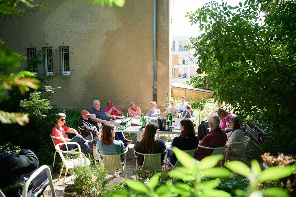 Ruth Buchanan: Ein Garten mit Brücken (Wirbelsäule, Magen, Kehle, Ohr); Gartenworkshop mit Carolin Pekle, Mönchengladbach; Mediatorin: Kathrin Jentjens; Foto — Florian Wagner, 2021