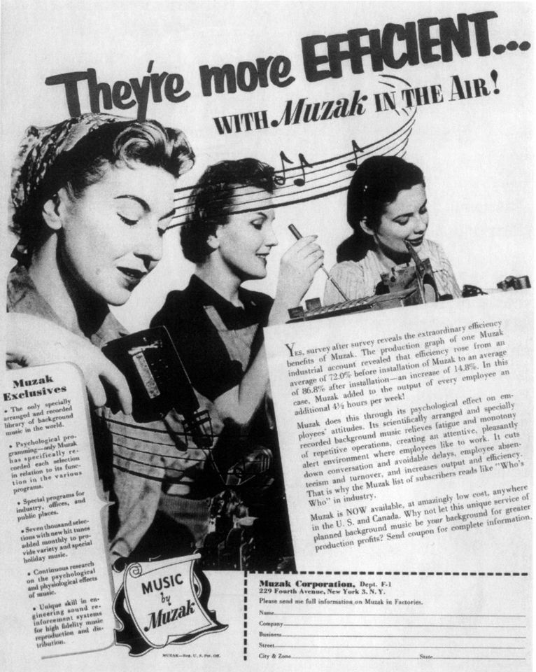 Muzak, Inserat, um 1950. © Lanza, Joseph (2004): Elevator Musik