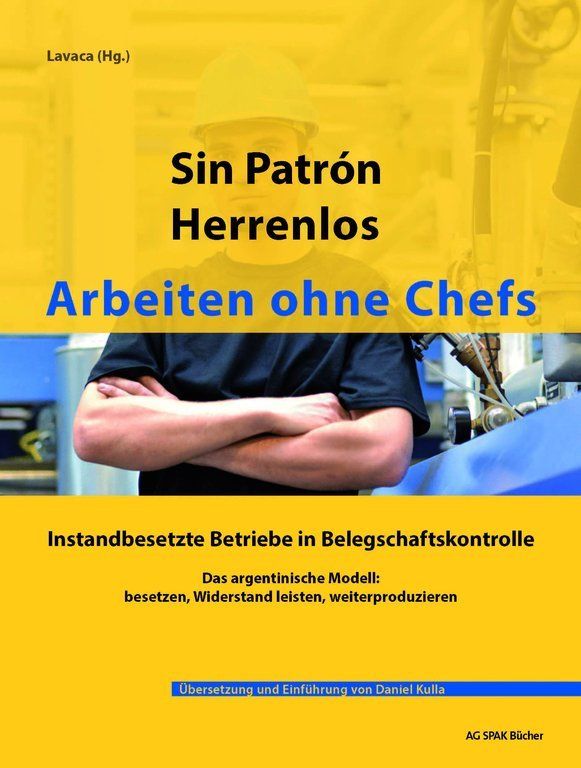 Zum Thema argentinische Betriebsübernahmen sind kürzlich zwei Übersetzungen im deutschsprachigen Raum erschienen. Sin Patrón, Herrenlos. Arbeiten ohne Chefs des politischen (Verlags-)kollektivs Lavaca, herausgegeben und übersetzt von Daniel Kulla und Wir übernehmen. Selbstverwaltete Betriebe in Argentinien von Juan Pablo Hudson, von den Herausgeberinnen und Übersetzerinnen Alix Arnold und Gabriele Schwab. Vielleicht überraschend ist erstere Veröffentlichung: Vorgelegt werden hier zehn ältere Betriebsreportagen. Das Buch wurde in Argentinien bereits 2004 veröffentlicht und dort als erste umfassende Publikation zu selbstverwalteten Betrieben stark rezipiert. Trotz des langen Vorworts von Daniel Kulla eignet sich das Buch deswegen eher als historisches Dokument, das die revolutionäre Aufbruchsstimmung spürbar werden lässt, die in einer Periode spektakulärer Ereignisse um 2001 entstand. Weniger aber liefert es einen aktuellen Blick auf die Entwicklungen und es hält sich auch darin zurück, eine Anleitung für einen deutschen Lernprozess zu sein, wie im Vorwort eigentlich angekündigt: Konkrete Fragen nach Umverteilungsstrukturen oder Arbeitsbedingungen bleiben im Hintergrund. Als leicht zugängliche, vertiefende Lektüre scheint es aber allemal geeignet, auch wenn einem das Vorwort des Bandes eine gewisse Toleranz für die politaktivistische Rhetorik abverlangt, wenn etwa unnötige Spitzen gegen die Regierung Kirchner zu lesen sind.