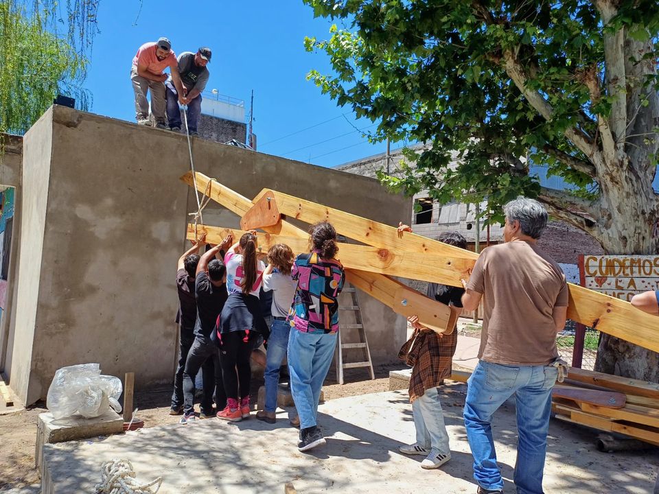 Gemeinsames Arbeiten für die Erweiterung und Aufstockung der Biblioteca Popular La Carcova in San Martín, einer Vorstadt von Buenos Aires; Foto – Lucas Gilardi