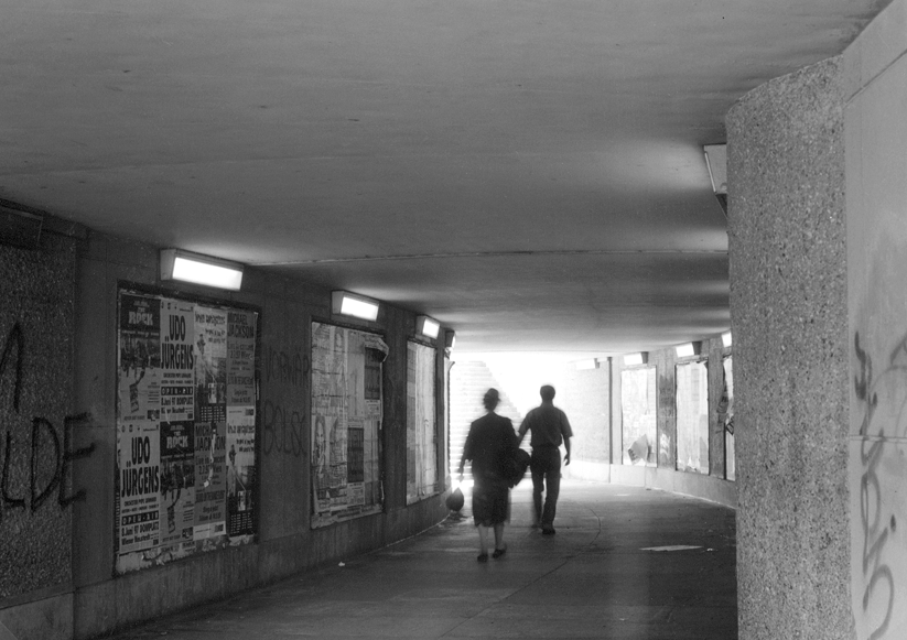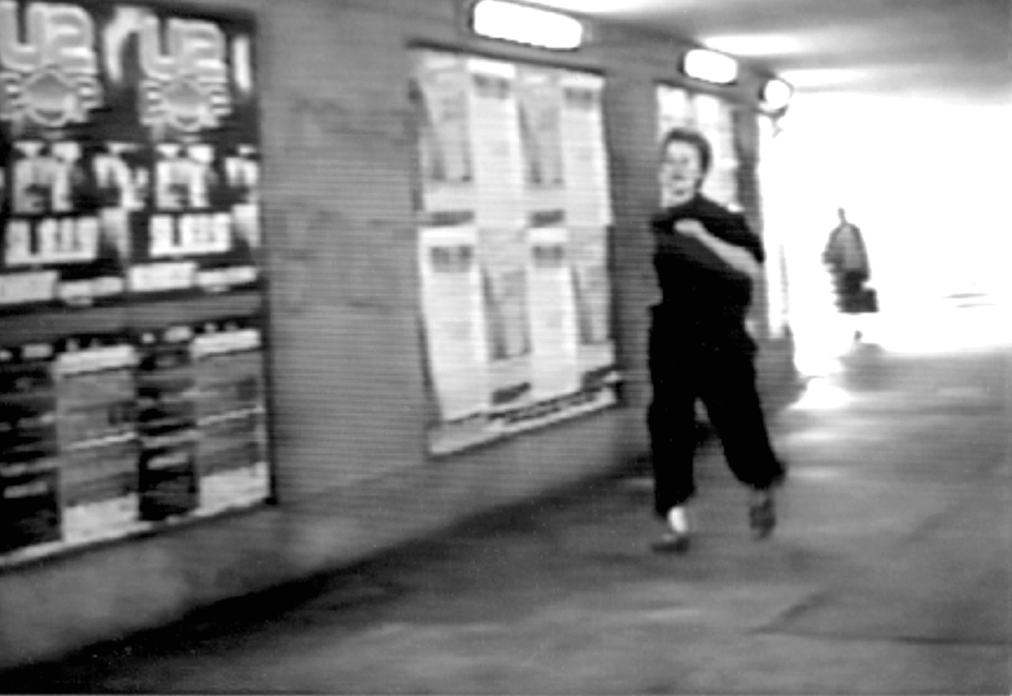 -Fotos und Videostills: »I go down. I go up. I am through before I even realize where I've been.« Annäherungen an den Praterstern. Zeichnungen, Fotos, Aktion, Videostills: Felicitas Konecny (Projekt bei Nasrine Seraji, Akademie der bildenden Künste Wien, 1997), Video: Raquel Ormella, Sydney.