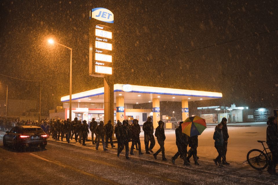 ›Spaziergang‹ von Querdenker*innen und Rechtsextremen am 29.11.2021 in Freiberg. Die Kleinstadt war eine der Hochburgen der Corona-Proteste. Foto — Vue Critique