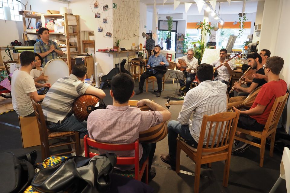 Musikprobe im Fachgeschäft für Stadtwandel; Foto — Fachgeschäft für Stadtwandel