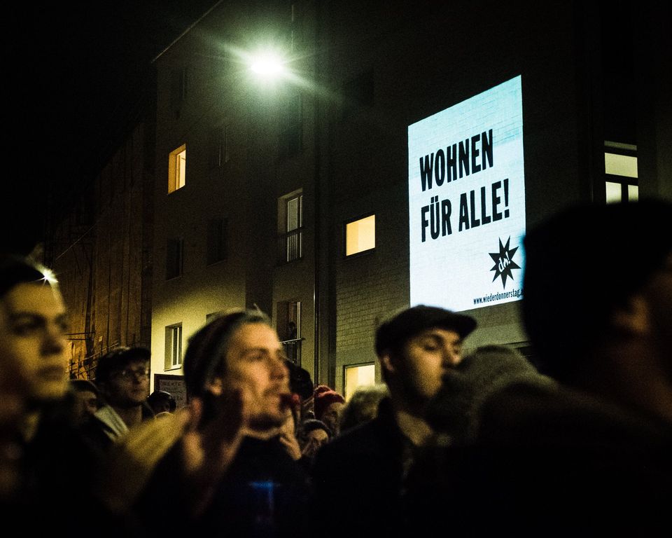 Abschlusskundgebung der Donnerstag-Wohnen-Demo beim Leon-Askin-Park; Foto — Jakob Alexander