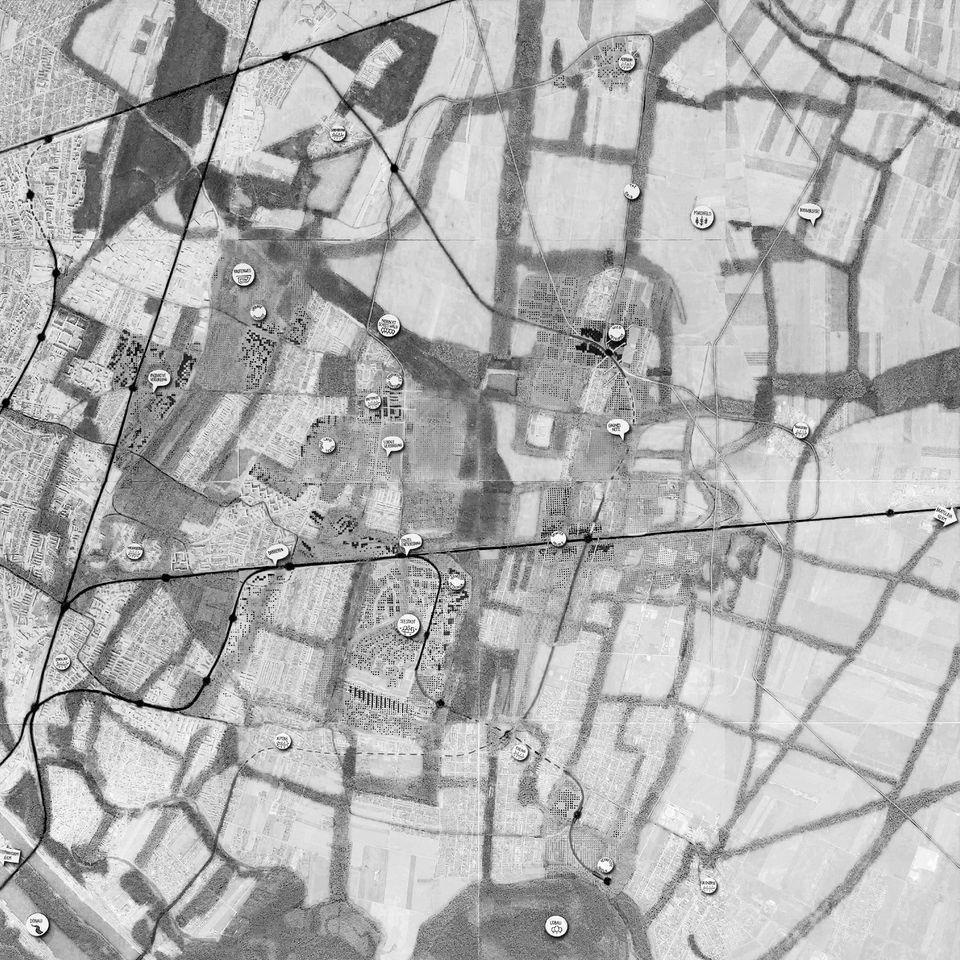 Diese Karte im Maßstab 1:5000 ist im Rahmen der Lehrveranstaltung 25 Jahre Zwischenstadt von Student:innen der TU Wien erarbeitet worden und stellt eine mögliche Gesamtperspektive für den Wiener Nordosten dar. Grundlage sind zahlreiche Einzelprojekte von Student:innen aus den zurückliegenden zwei Jahren, die sich allesamt mit der zukünftigen Entwicklung des Gebiets beschäftigen. Bildrechte — Dominic Lichtenberger