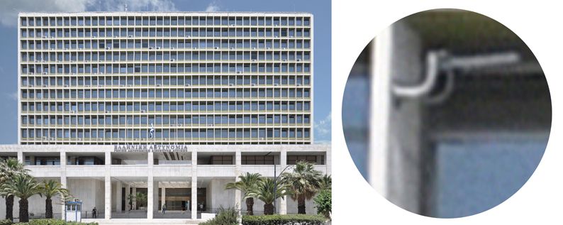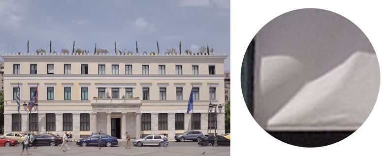 Was hast Du in diesem Park gesehen? Nichts. (Blow Up, 1966)Die neuen Serie der griechischen Fotografin Zoe Hatziyannakis bestehen aus Abbildungen mehr oder minder bekannter öffentlicher Athener Bauten wie des griechischen Parlaments, des Finanzministeriums, des Landgerichts, des Rathauses, des Firmensitzes des staatlichen Energiekonzerns, der Fakultät für Jura oder des Entwicklungsministeriums.