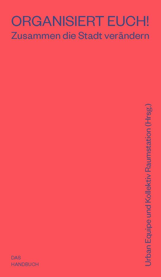 Ein unmissverständlicher Imperativ auf einem roten Cover: ORGANISIERT EUCH! Das letztes Jahr erschienene Buch, genauer: Handbuch, herausgegeben von Urban Equipe und dem Kollektiv Raumstation will städtischen Veränderungswillen fördern. Dabei bietet es Unterstützung für die Bildung und Organisation von Kollektiven durch Anleitungen, Anekdoten, Vorlagen und Verweisen. Durch die Mitarbeit von über 30 Akteur*innen vielfältiger Initiativen aus Deutschland, Österreich und der Schweiz gewinnen die Erzählungen an Zugänglichkeit und Identifikationspotenzial. Mithilfe der Creative-Commons-Lizenz wird das Werk universell verfügbar und kann unkompliziert vervielfältigt, geteilt und diskutiert werden.